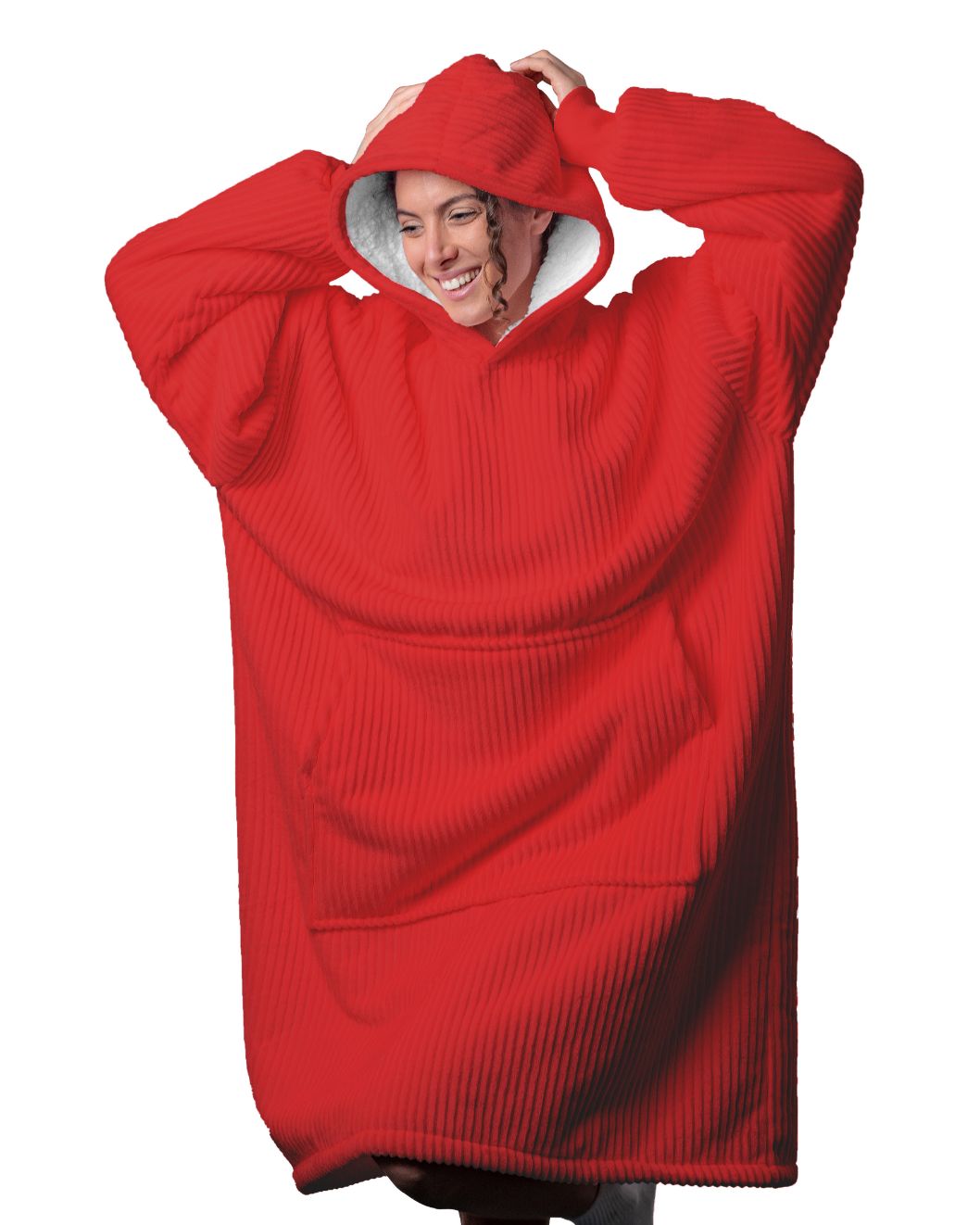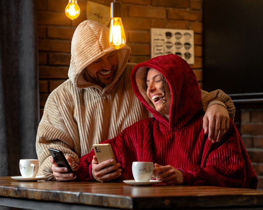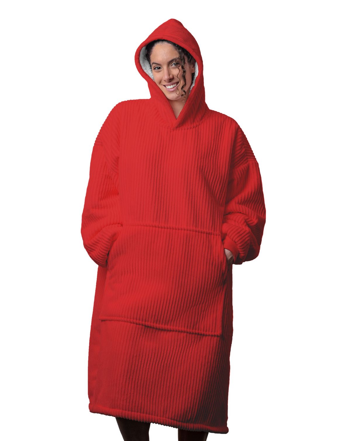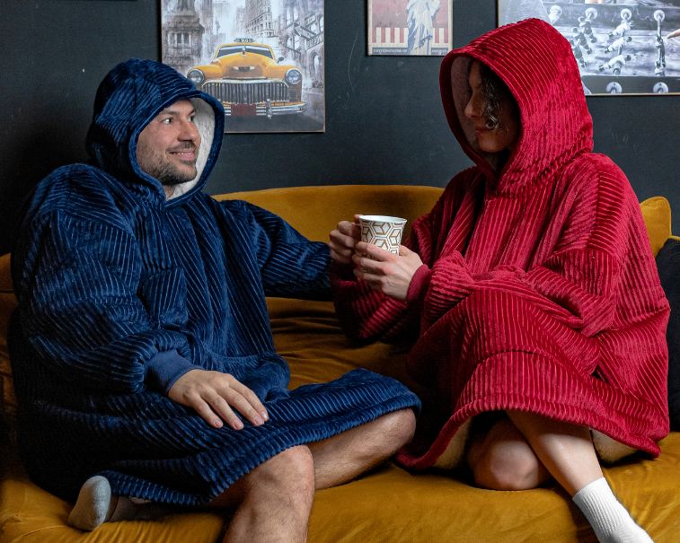 Denne hoodie i blød rib er langt mere end bare en afslappet kåbe. Med sin dybe farve og ribbet struktur giver den et elegant og lækkert udtryk til hyggelige stunder derhjemme. Den lange model hygger og varmer kroppen helt ned til over knæene. Hætten kan bruges til at omfavne hele kroppen, og giver en afslappende effekt.