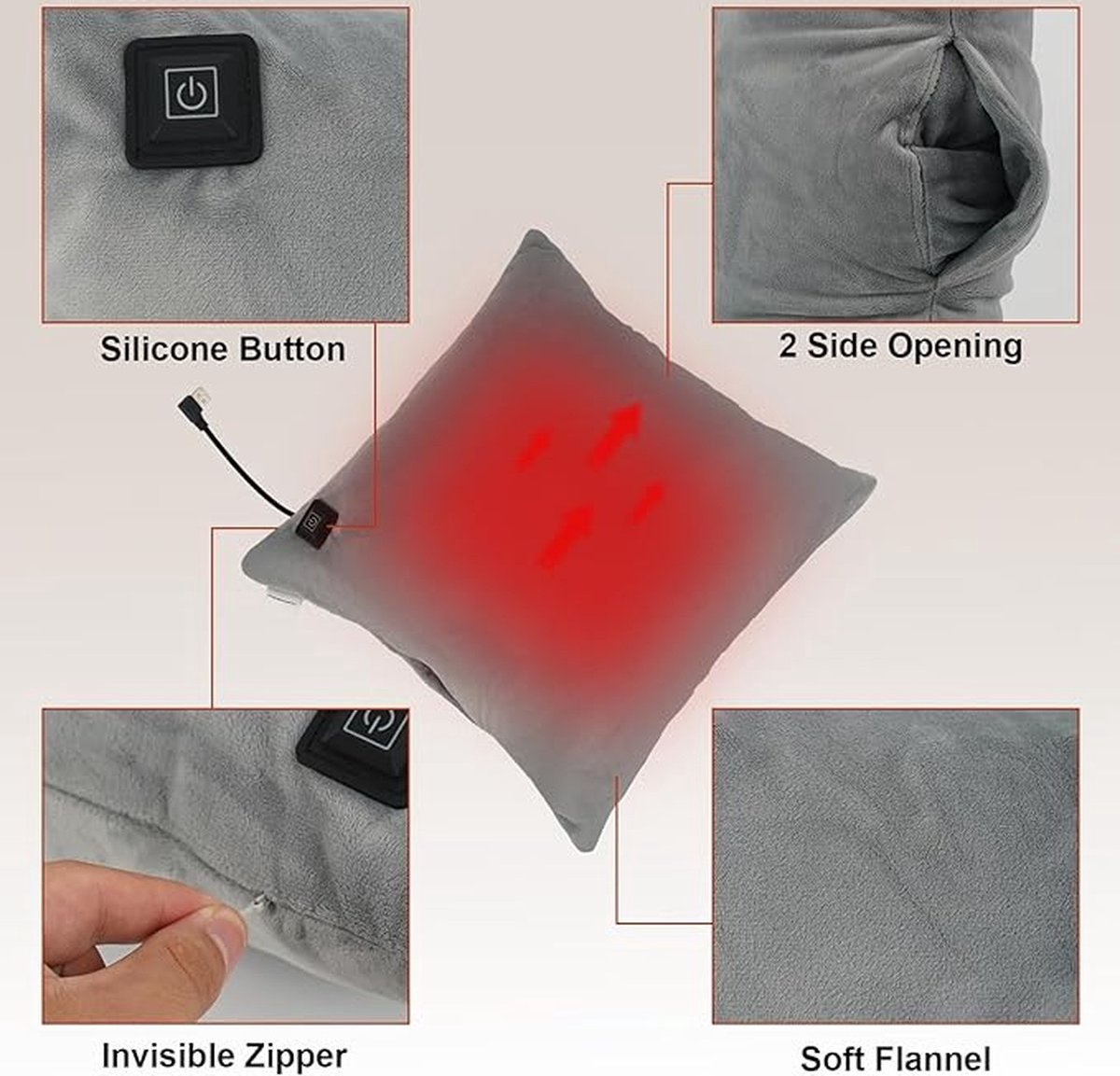 Opvarmet Pude 40 × 40 cm – 3 Varmeniveauer – Trådløs Infrarød Varmepude – USB-Genopladelig (Grå)