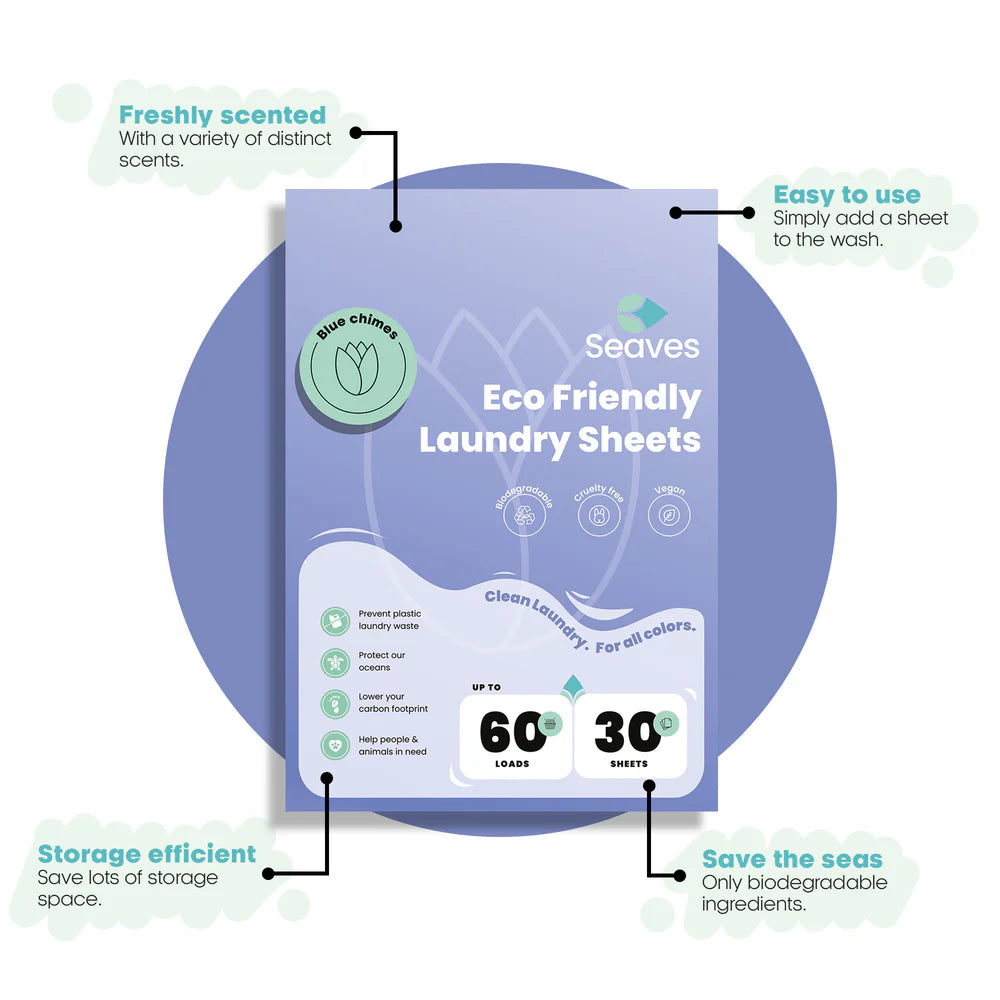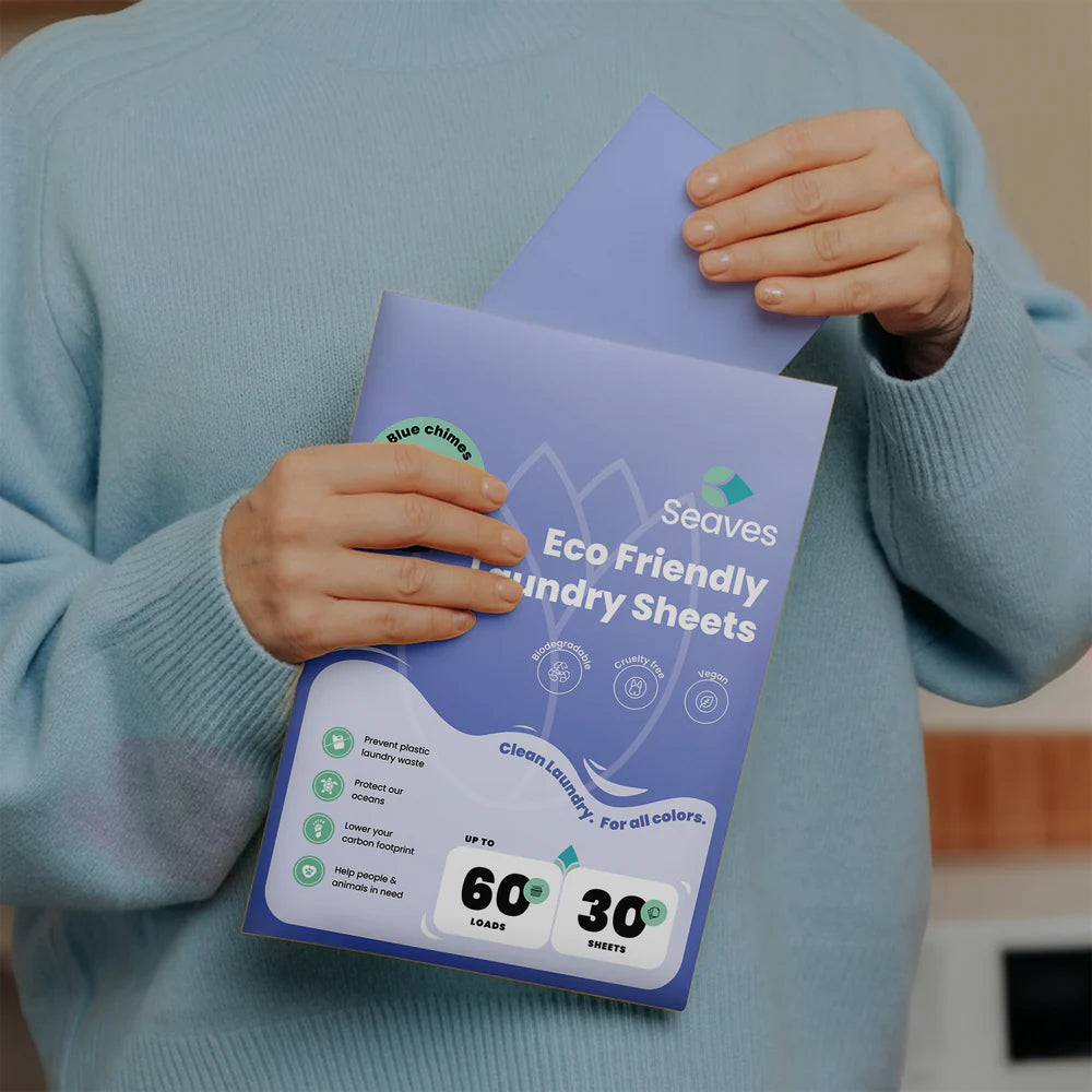 Med Seaves Miljøvenlige Vasketabs får du bæredygtig, effektiv og praktisk tøjvask uden plastik og med omtanke for miljøet. Arkene opløses direkte i vand, efterlader ingen rester og hjælper dig med at gøre din tøjvask grønnere – uden at gå på kompromis med friskhed og renhed.