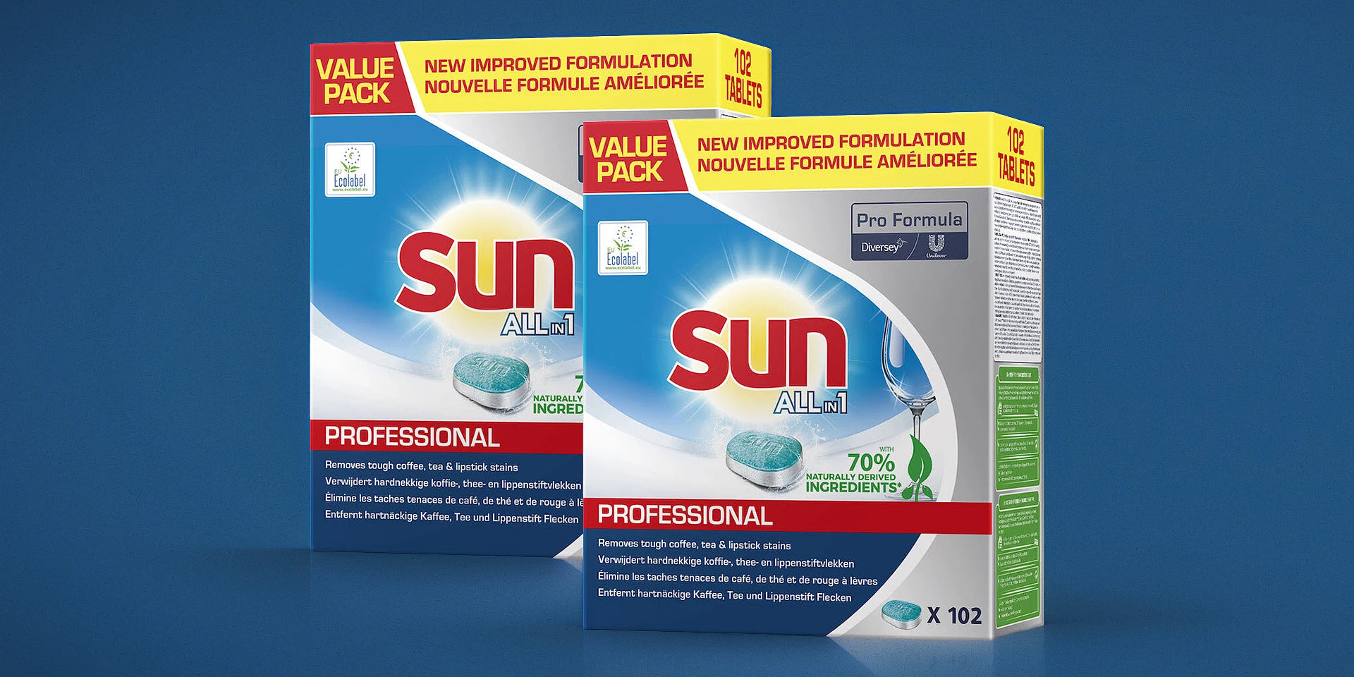 Sun Lot Professional All in 1 er udviklet til at levere konsekvente, højkvalitetsresultater, gang efter gang. Tabletterne er hårdføre og opløses først under vasken for at frigive deres kraftfulde, fler-komponent formulering på det rigtige tidspunkt i cyklussen.